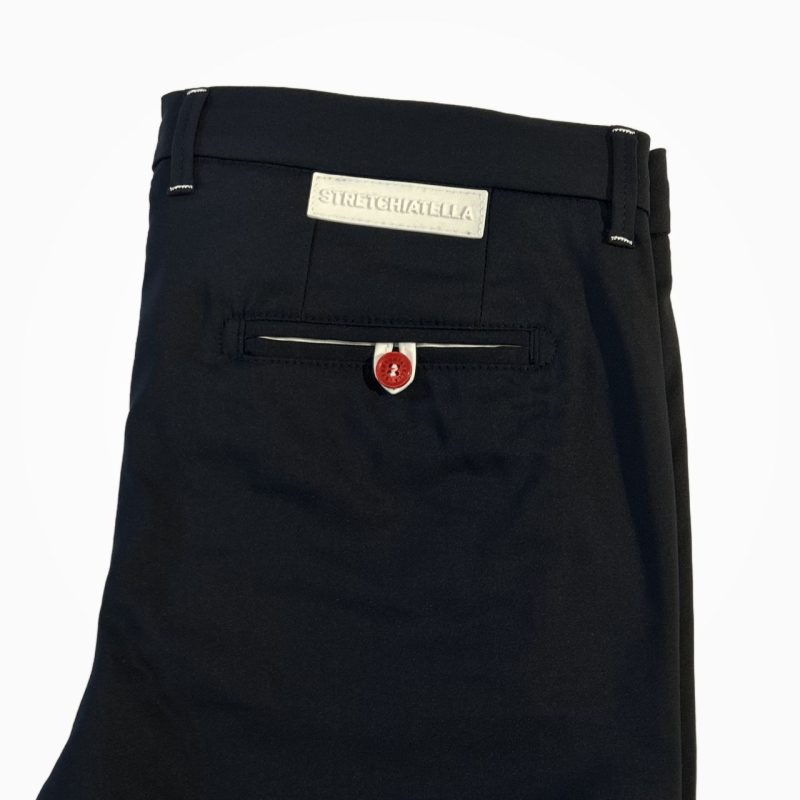 Calças chino em sarja com corte muito elegante e detalhes que definem a essência da marca Stretchiatella.