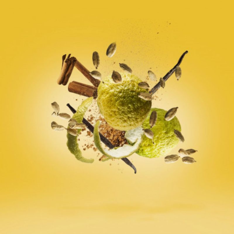 . Limão Amalfi, Bergamota da Calábria, Laranja Brasileira, Gengibre.