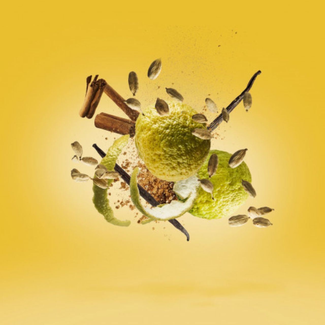 . Maçã Verde, Melão, Pêra, Cravo, Cardamomo da Guatemala, Canela de Madagascar.