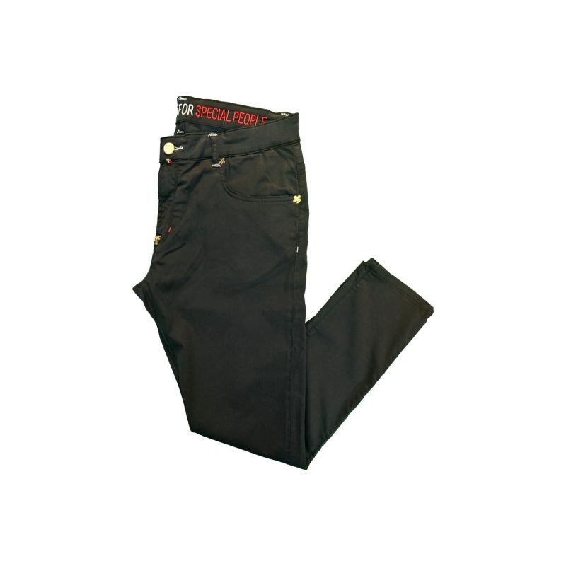 40% algodão, 5% elastano, 55% tencel.